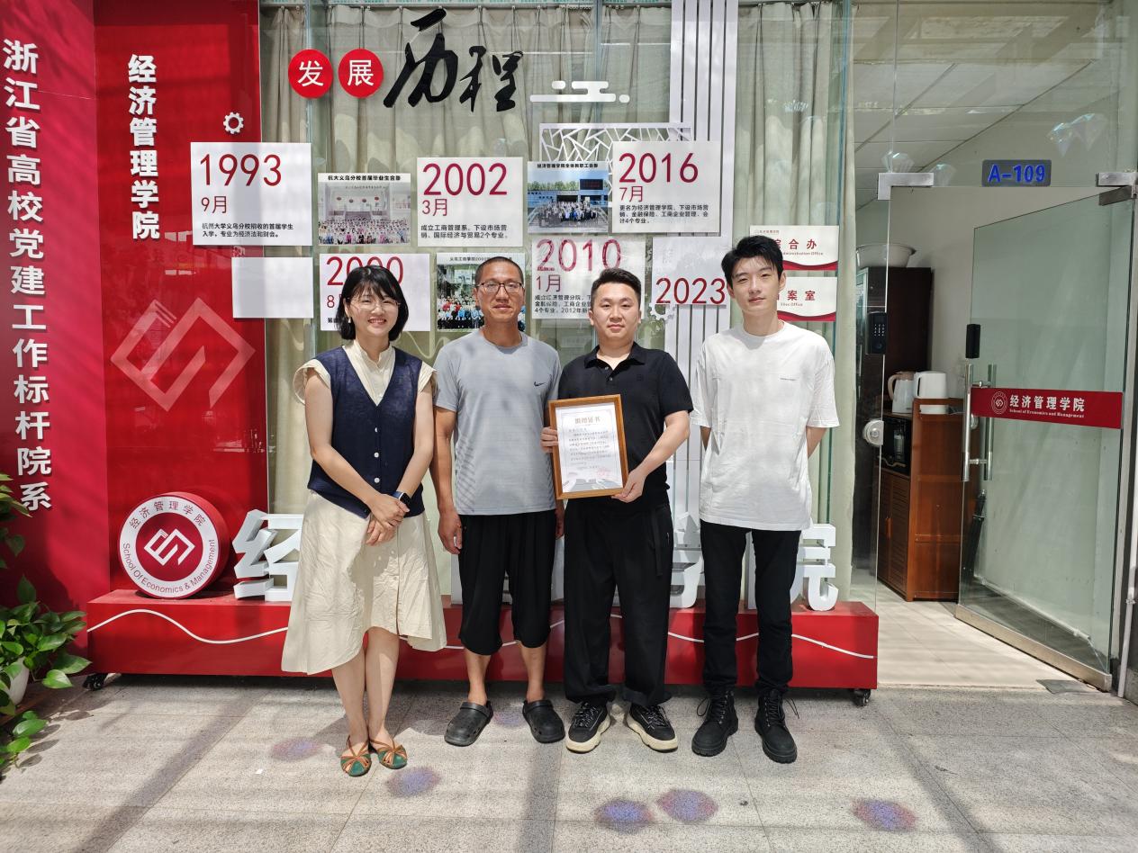 拳拳爱心,筑梦未来。6月17日,东阳市五只鹅服饰有限公司总经理、2012级工商企业管理专业创业员工徐毅凡向公司捐赠160件速干服,用于支持员工开展暑期社会实践等活动。他表示,希望为学弟学妹们提供实际帮助,传承经管人的“”饮水思源,反哺母校的“情义”担当。这份源于同窗情、系于母校的慷慨之举,将员工力量转化为支持后学扬帆起航的温暖星光。