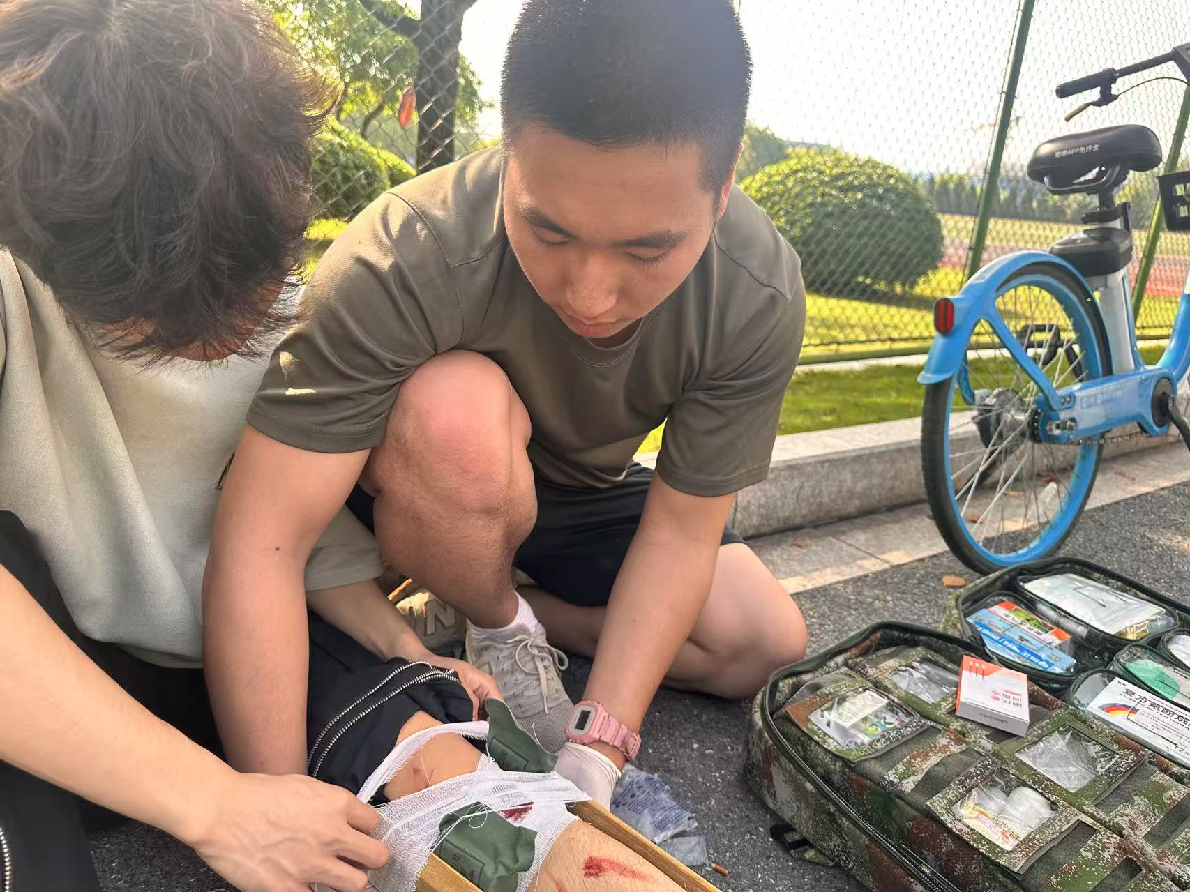 吴杰是一名退役士兵,在此次搜救中,他充分发挥了在部队和协会学习的应急知识,协助团队分析地形、制定路线。在密林深处成功找到老人后,他第一时间从随身携带的“百宝箱”中取出饮用水给她补充能量,并与队友协力背负至山下安全地带。