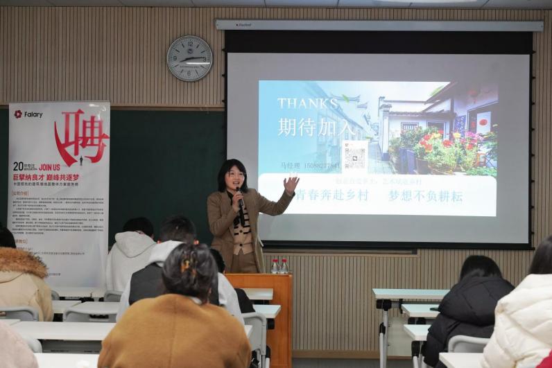 作为国家高新技术企业,法莱利以"建筑皮肤革命者"的姿态,在新型建材赛道持续突破50余项专利壁垒。在宣讲会上,企业负责人详细介绍了公司的企业文化、核心业务板块以及未来的人才需求规划。他还谈到了“未来工程师计划":通过AI辅助设计平台、高校共建的联合实验中心等载体,构建"技术迭代-人才成长"共生体系。"我们寻找的不是岗位适配者,而是空间美学的破壁人。"