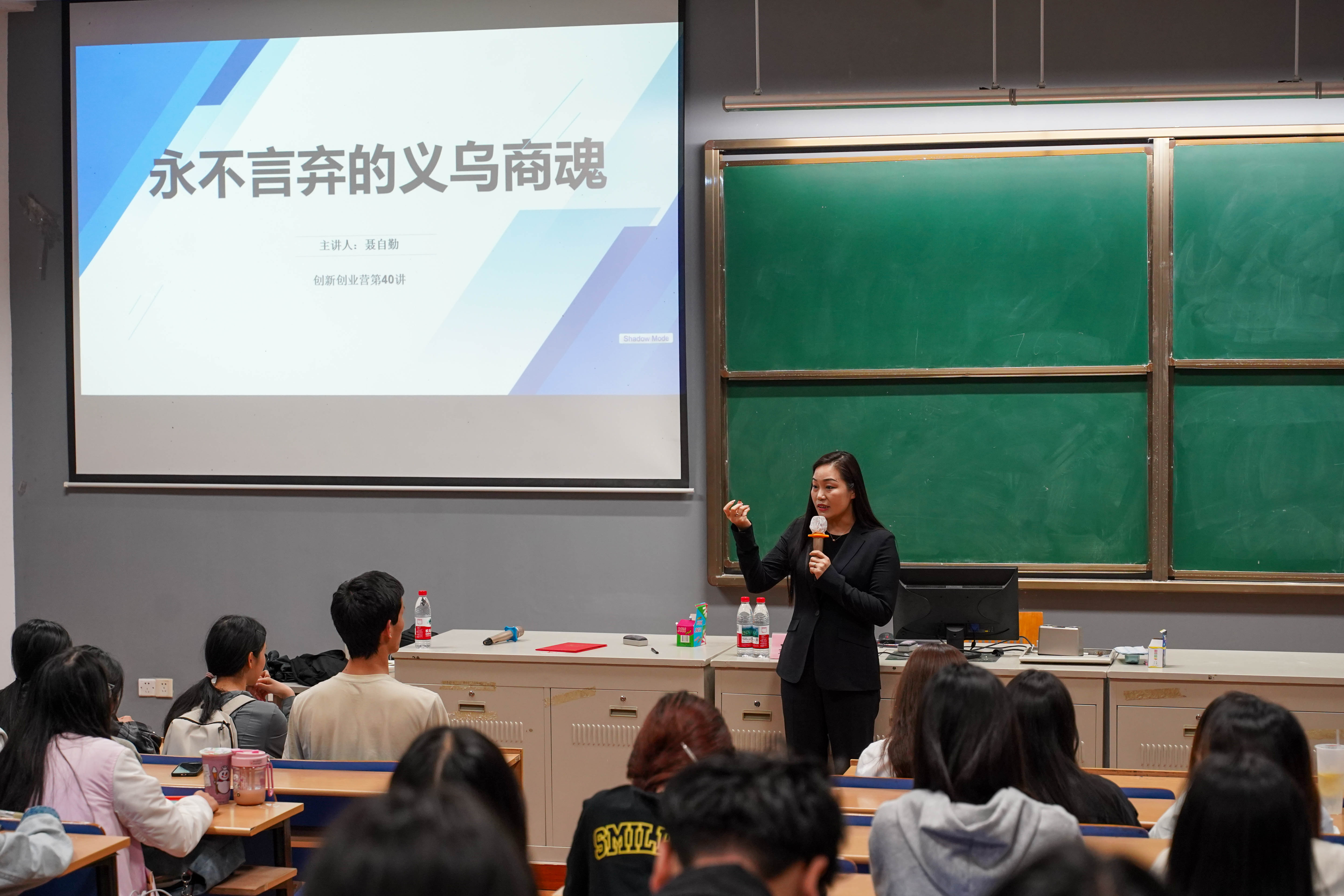 市场贸易讯息万变,义乌商人如何从容应对,4月27日晚,vsport官方网站第40期创新创业训练营邀请义乌节庆用品行业领军人物、“最牛老板娘”聂自勤,她以“永不言弃的义乌商魂”为题,为200余名学子解码新时代创业基因。