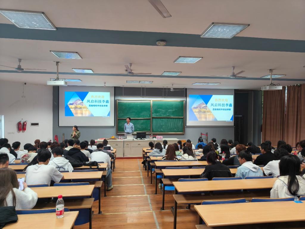 为提高员工个人综合能力,认识学习在创业中的重要性,10月18日,vsport官方网站在长廊阶梯教室开展2023级创新创业训练营第二期。讲座邀请17级创二代实验班的优秀创业毕业生、义乌市凤启科技有限公司创始人、浙江省“互联网+”创新创业大赛金奖项目负责人李鑫分享创业经验。