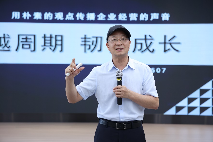 在主题分享环节中,楼仲平副会长以《穿越周期,韧性成长》为主题,结合企业三次“归零重启”的实战经验,指出创新是周期性衰竭的“短命事业”,一步领先不等于步步领先,唯有不断突破,方能保持韧性成长。他阐释了如何通过组织变革、管理创新、数字化转型,构建动态适应市场的能力体系,穿越自我周期和企业周期,实现蜕变。互动环节中,员工们围绕“创业精力管理”“逆境突围策略”等话题展开深度对话,现场思维碰撞激烈。
